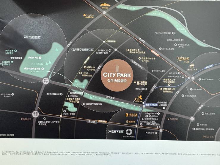 生态:毗邻新金牛公园,1km即达天府艺术公园。区域公园众多:金牛体育中心、成都市新桥公园、合计约3150亩的城市公园集群。