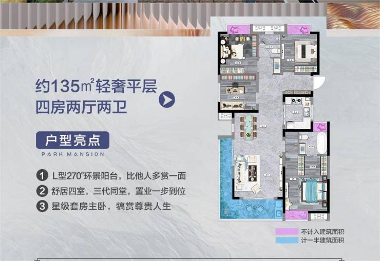 【135㎡轻奢平层——270°观景阳台、宽敞空间百变四房】