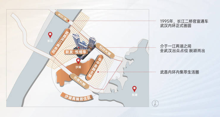 东- 华中金融主轴、西- 武昌滨江商务区、北- 武汉大道 南- 沙湖大桥·楚汉路一线