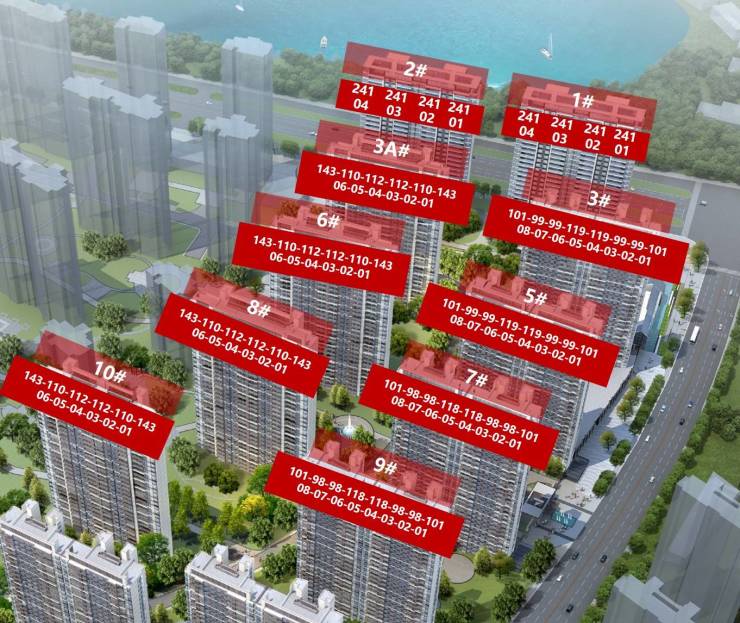 产品类型:建面约99-143㎡高层,建面约241㎡临湖大平层