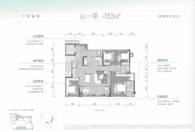 建面约133㎡奢阔四房