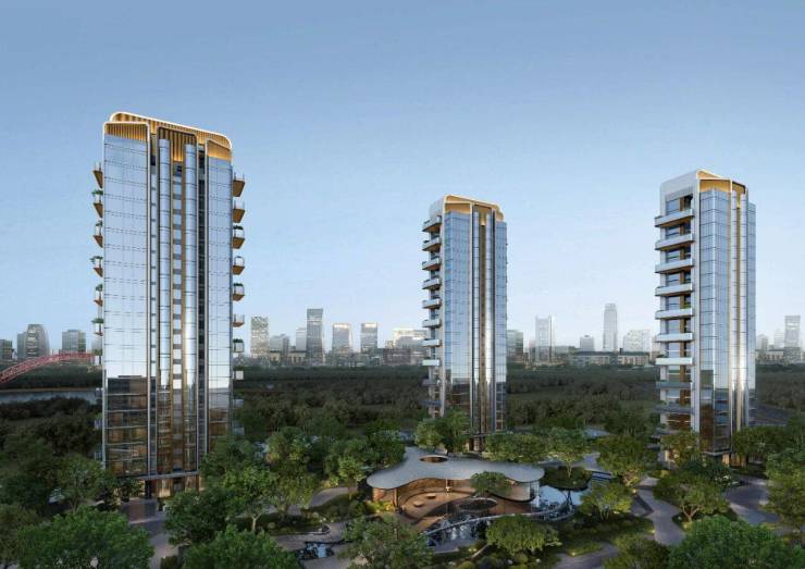 对外,项目西邻锦江源湾,北靠天府森林公园,东望麓湖水域,形成“一江一湖一森林”的景观矩阵。