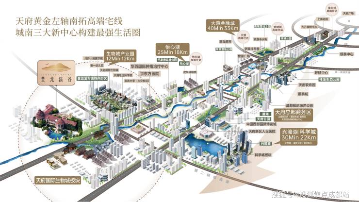 9、天赋贵脉:城南天府新区剑南大道旁,约25分钟到天府二街,与城市保持最佳距离;5000亩大盘景观+三山鼎立、锦江环绕的风水宝地+约6万方商业广场;