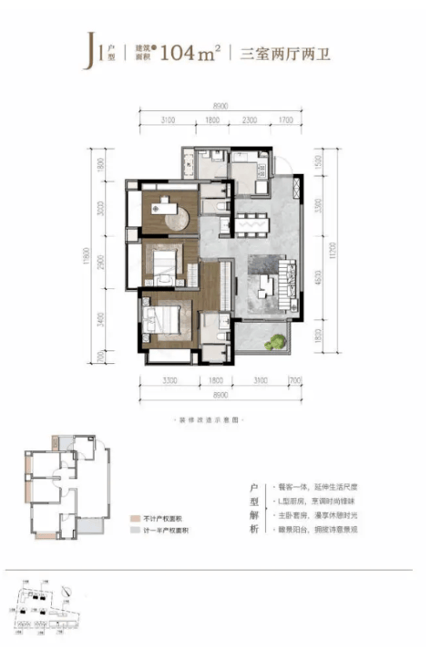 建面约104-109㎡ 三房两卫 (舒适升级)