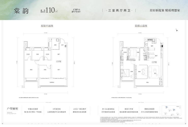 开发商:中国金茂(央企) 物业:金茂物业 3.2元/平 容积率:3.09 交房时间:2026.6.25