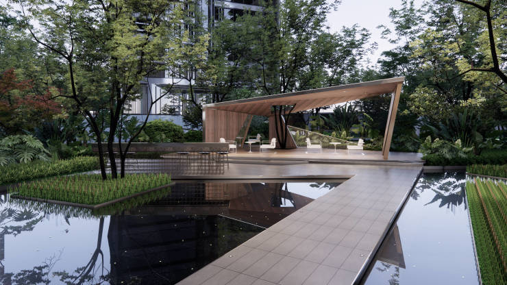 延续建筑的现代雅奢风格,营造简洁大气、时尚的景观空间。7型建筑布局,形成东西-南北两大景观轴线,宅间形成多个集中的花园空间序列;育树引林,自然复兴,依托原生树打造七组植物花园:七组植物,七重空间感受,四季有绿;七重时间花园院落、两条活力环道,打造新成都花园院落。