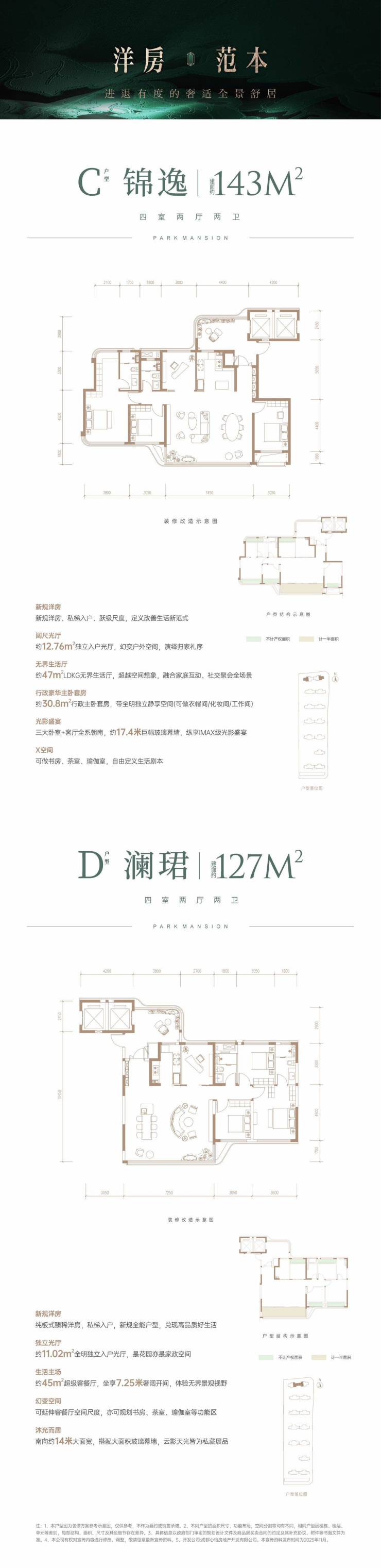 建面约:1号楼(127-143平),2-7号楼(128-146平)