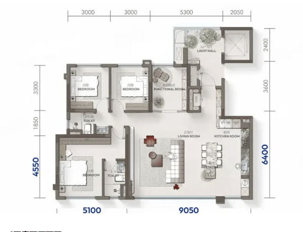 建面约199㎡四房户型