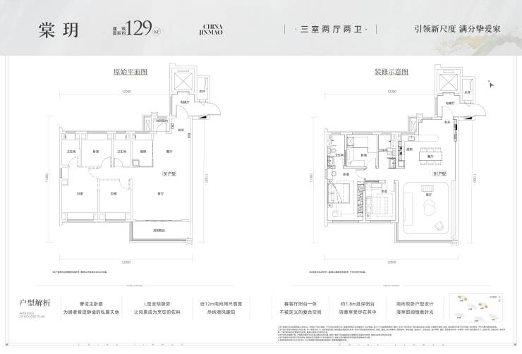 开发商:中国金茂(央企) 物业:金茂物业 3.2元/平 容积率:3.09 交房时间:2026.6.25