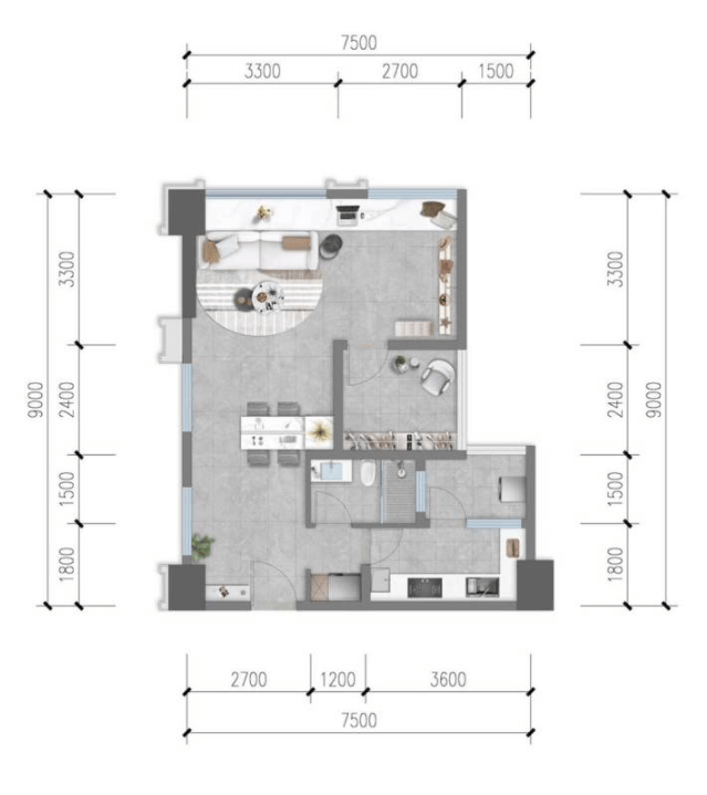 此面积段产品总价门槛相对亲民,空间方正实用。开放式客餐厅设计可创造多元社交或工作场景,非常适合单身精英、初创企业主自住,或作为服务于CBD白领的高品质出租房源,投资灵活性高。
