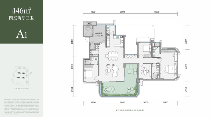 主力户型为建面约146㎡、188㎡、248㎡天幕环景院,户户配置约6米挑高空中花园,最大空中庭院面积约50㎡。