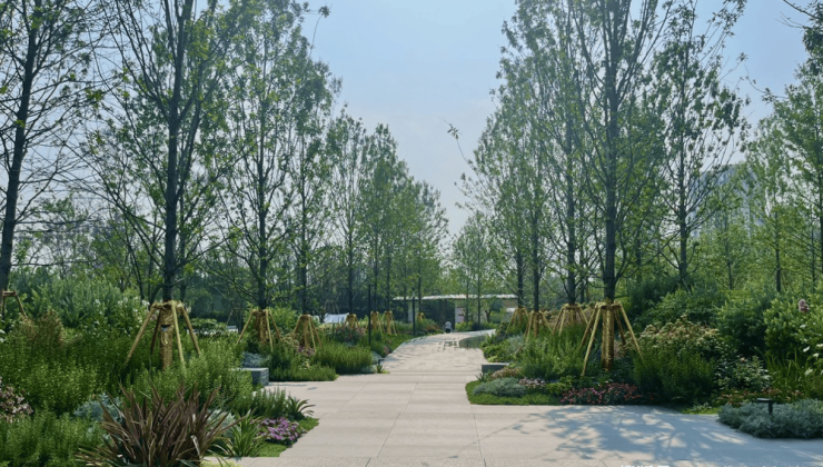 上璟润府以约160亩生态公园为基底,匠心营造1公里溪谷景观带、1.5公里蓝花楹主题大道、3.9公里林荫步道系统,创新打造溪谷十二景、四季主题花园、自然教育基地、全龄运动空间等特色配套,让每次归家都成为沉浸式的公园漫游体验。
