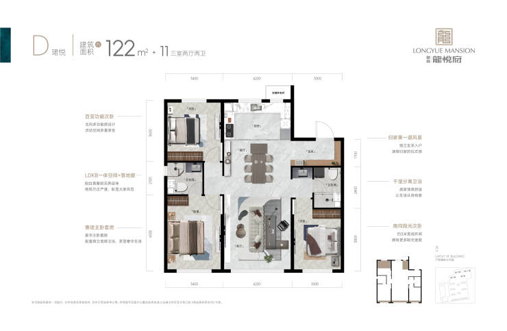 建面约85-122㎡ 瞰景宽域(LDKB一体空间、超视野宽厅+IMAX光幕落地窗、奢适主卧套房)