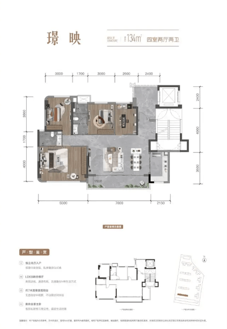 项目主力产品为建面约134㎡和141㎡的改善户型,设计以功能性、舒适度与景观视野为核心,精准匹配主流改善家庭对空间和品质的升级需求。