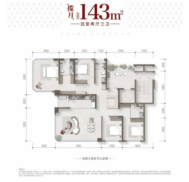 建面约143㎡ 奢阔四房三卫
