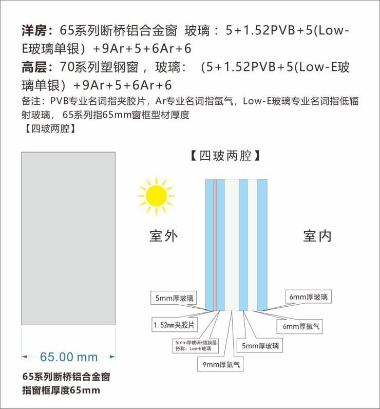 产品全新升级:采用四玻两腔玻璃:隔音、隔热、隔紫外线