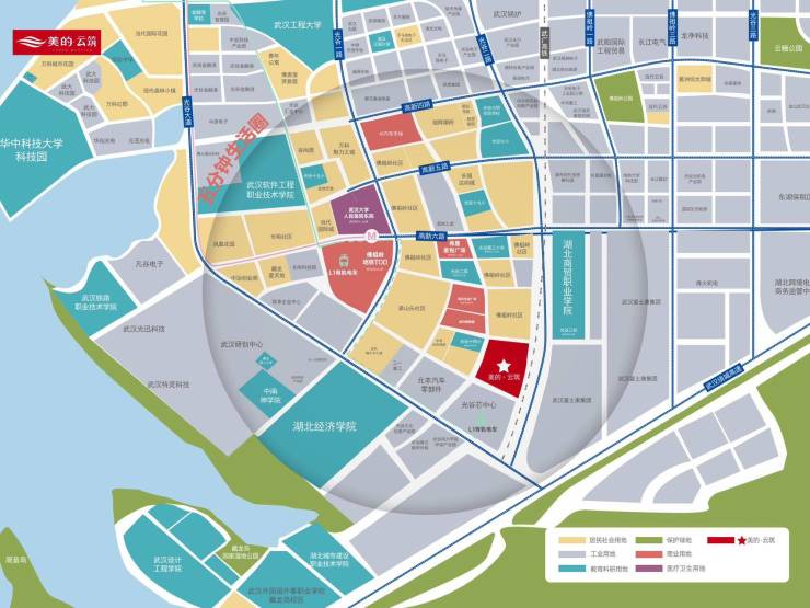 三、【区位介绍】美的·云筑处于康魅路与流芳路交汇处,北至康力街,东邻光谷二路,比邻金融港、产业园等【金融港】【产业园】