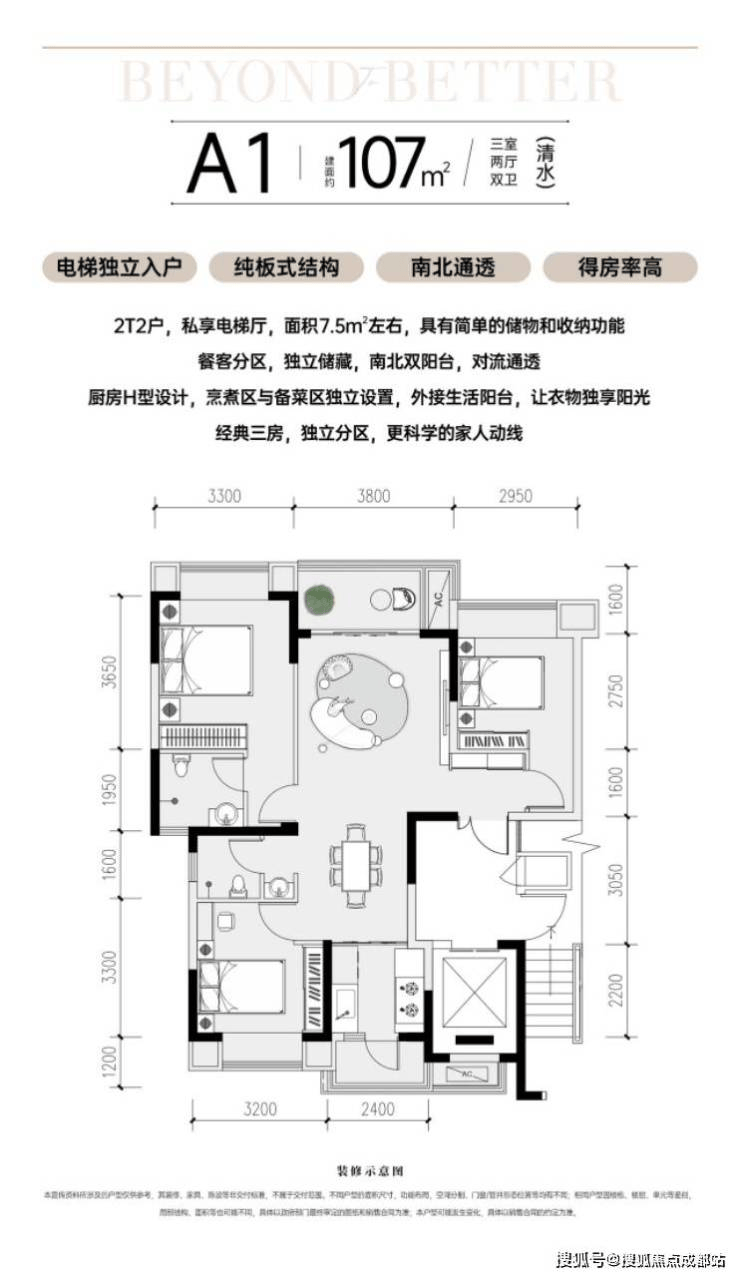 电梯独立入户、纯板式结构、南北通透、得房率高