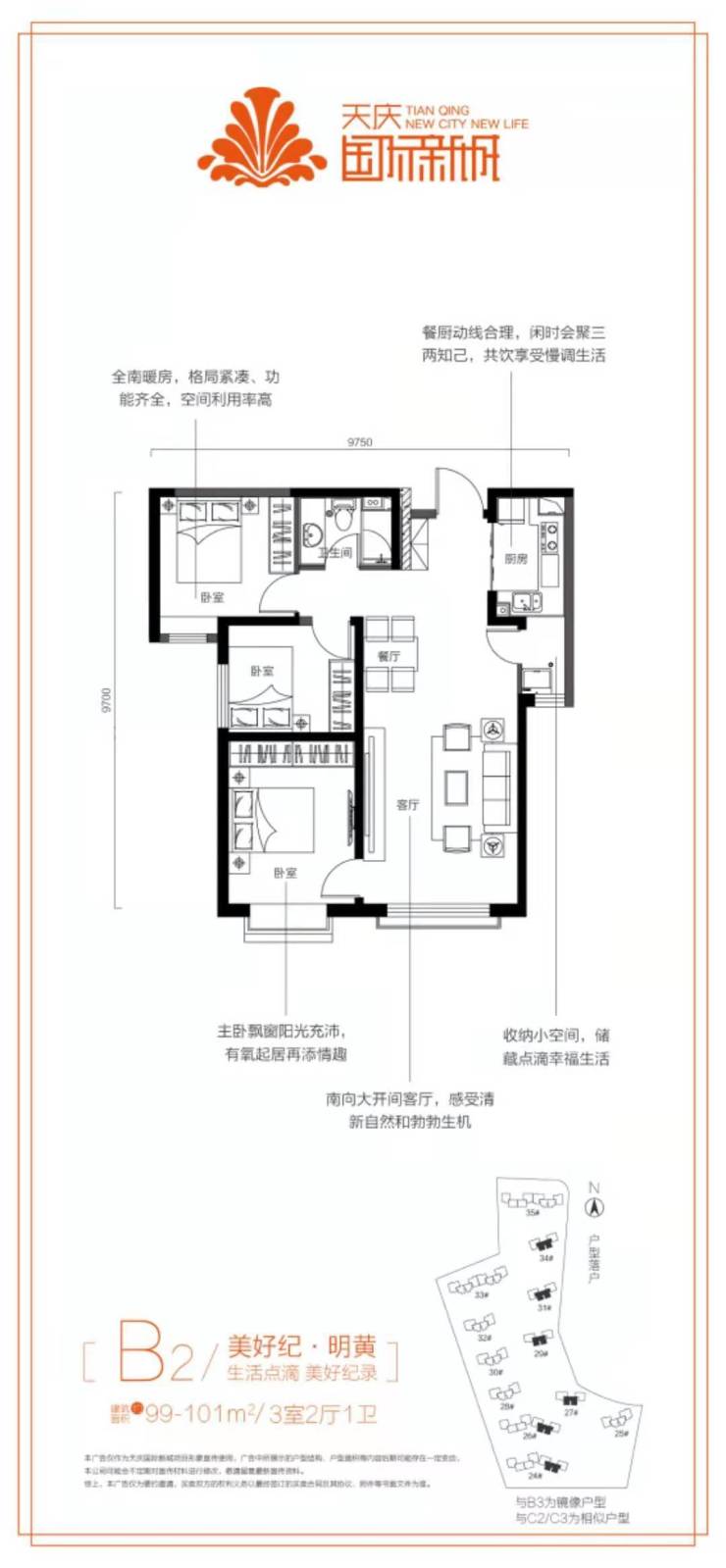 B2、B3户型 三室两厅一卫(99-101㎡)