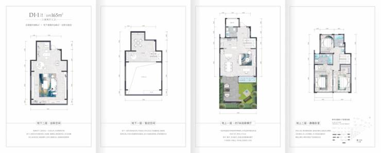 地上建面165㎡户型上、中、下叠: