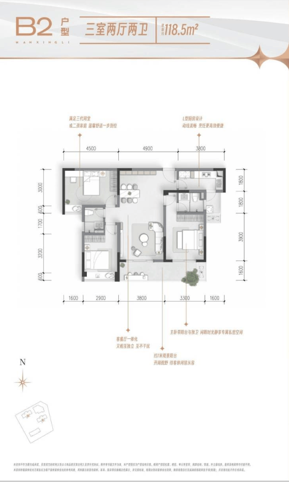 04 主力户型解析 纯粹118-125㎡精装三居,以全屋智能与科学功能布局,满足单孩、二孩及多代家庭的品质改善需求