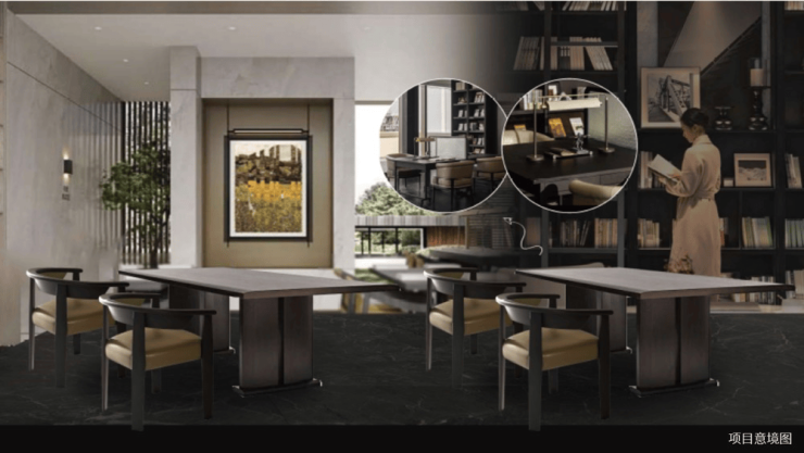 采用"一轴四进六园"布局,打造万方中央景观区,四重归家礼序