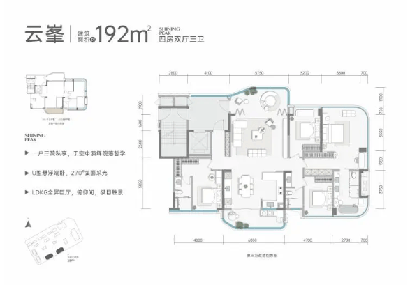 项目专注顶层改善,提供建面约192㎡、230㎡、300㎡的纯粹大平层产品。所有户型均以极度奢阔的尺度、前瞻的功能布局与精工细节,满足家族传承与巅峰生活的空间想象。