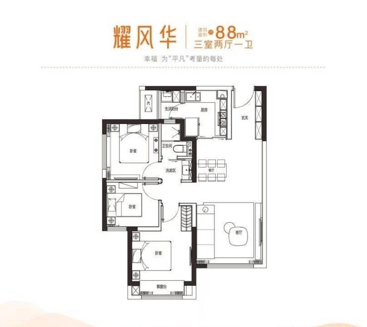 特点:南北通透,双阳台设计,主卧套房,动静分区,高得房率。