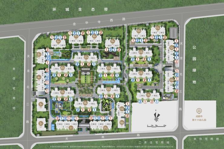 国誉府总占地约101亩,在金牛TOD旁,容积率仅 1.78低密住区,外享三大公园环幕视野,内拥一环两轴十二院园林景观,建面约 180-274m²花园跃墅,公园城市生活的理想诠释