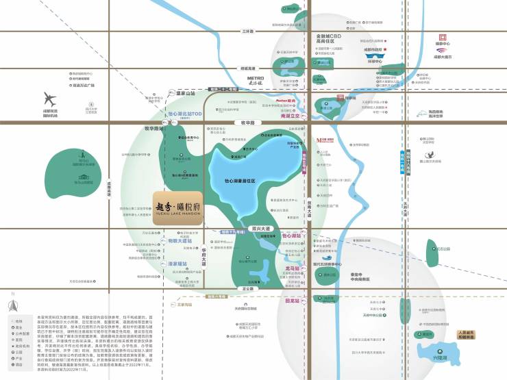 区域总面积12600亩,住宅用地仅占16%,平均容积率1.9,打造纯粹高端住区。