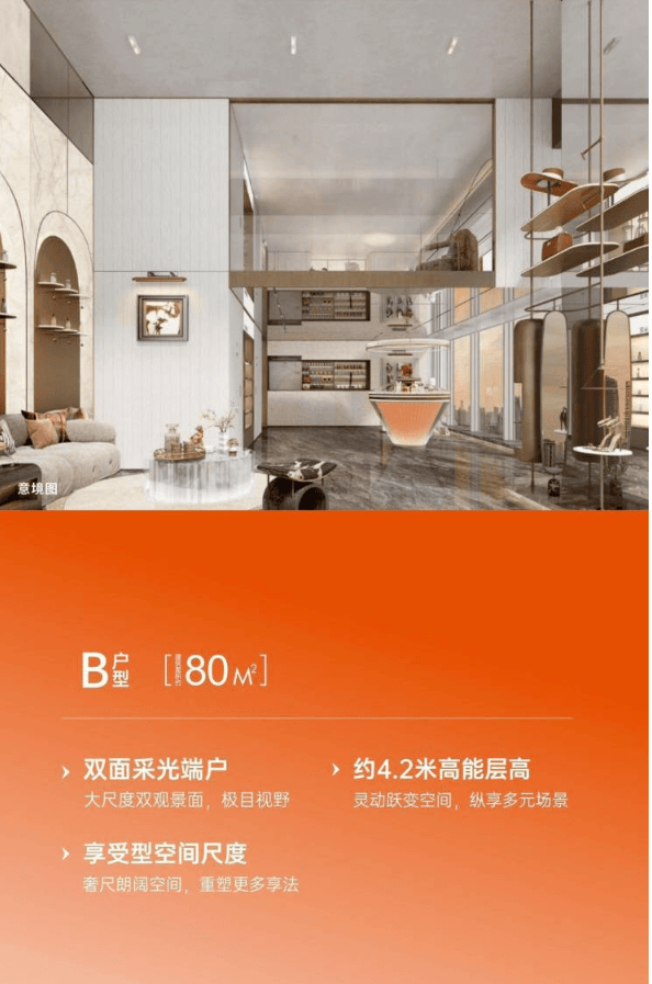 此系列产品是“空间魔术”的实践者。凭借4.2米层高,可自由改造为上下双层的立体空间,实现居住、办公、工作室、民宿等多重功能复合。例如,约50㎡可打造为功能齐备的精致小家或个人工作室;约80㎡则可实现更为宽敞的居住体验或小型团队办公。结合项目双轨上盖TOD带来的巨大人流与便捷性,以及2027年4月的清晰交付预期,无论是用于自住、创业、投资租赁,都是分享主城核心枢纽价值的灵活金融工具与生活载体。