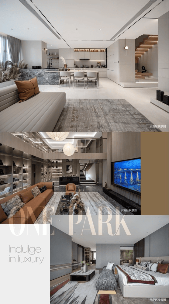 GVL怡境国际大师执笔,以安缦酒店为蓝本,打造"双轴一谷多园"景观体系。4米艺术流瀑、三进制归家礼序、普拉达绿奢石照壁等细节,营造度假式居住体验。