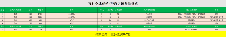 万科金域蓝湾B2-B3-B6-B7#B22#B17/B20号楼在售,B5#B9#B10#B15#B16售罄,其余未推售