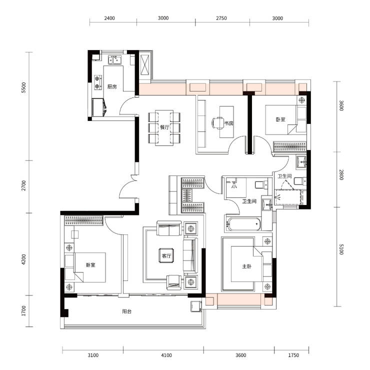 【C2户型 :约139㎡户型 4室2厅2卫】