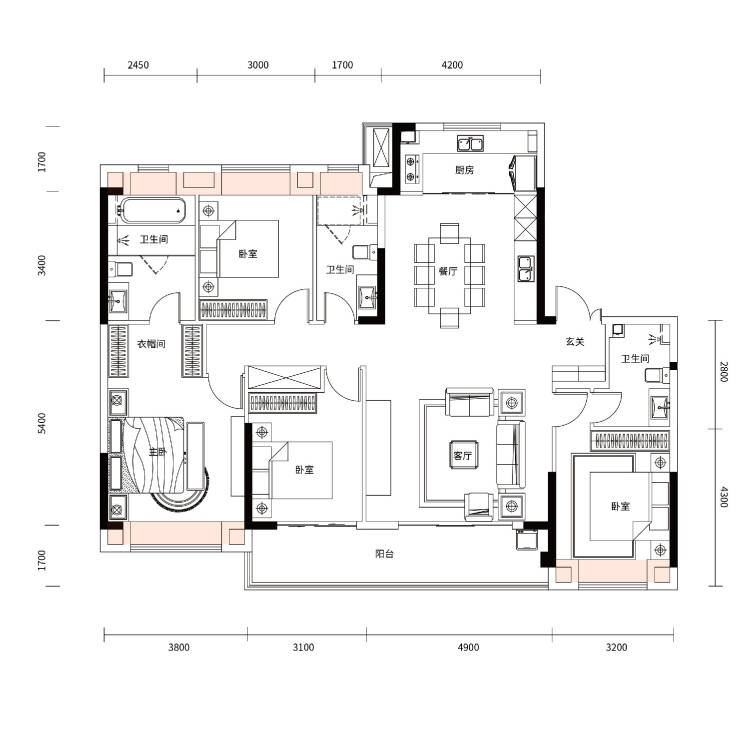 阳光双套房:主卧臻配独卫衣帽间,尊崇私密,兼得雅致便捷