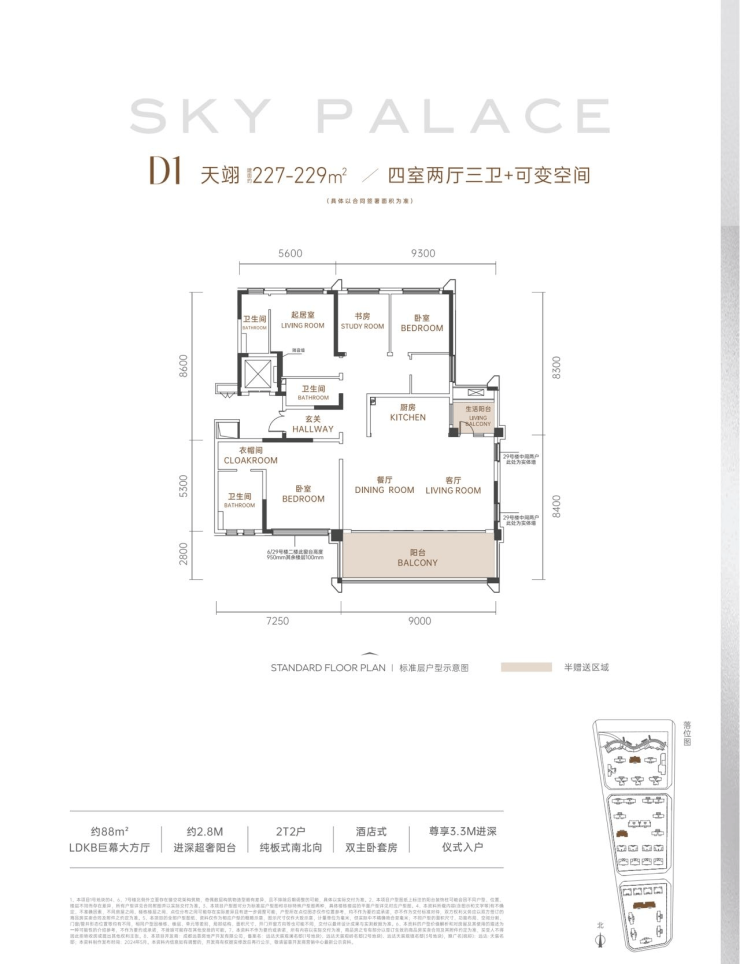 D1天翊(227-229㎡四房三卫+可变空间)