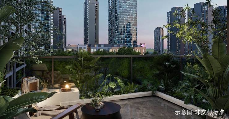 天空的岛,心中的院,前沿“垂直森林”概念,把花园引入窗外,约100%高得房率,兼顾功能性与美学格调,约5.7m挑高花园露台,私享诗意天地。