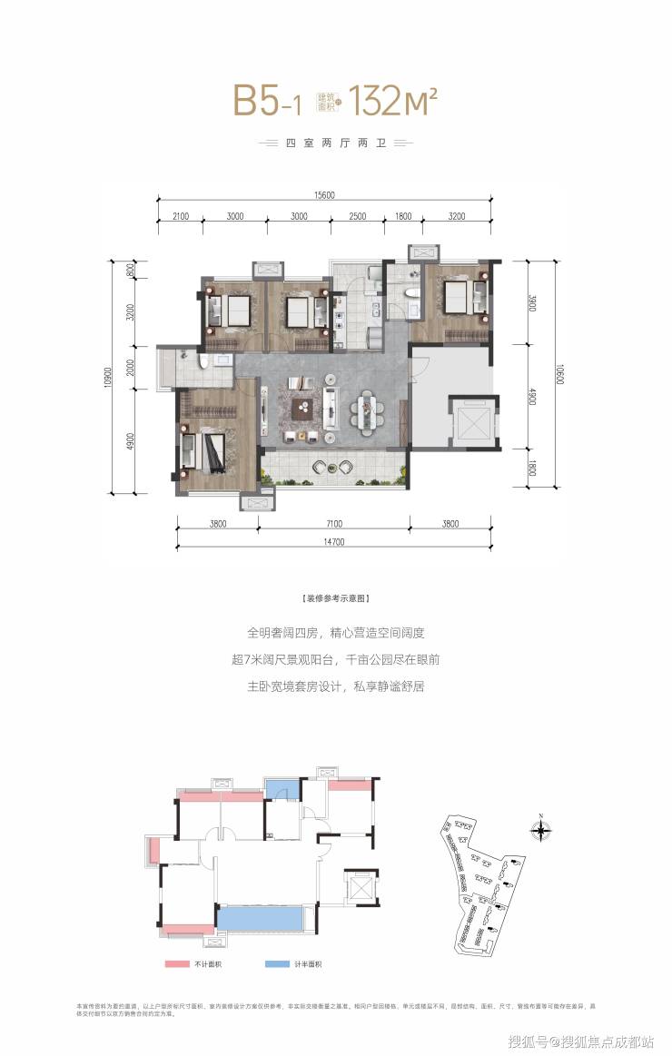 建面:122m²、132m²(套四双卫)