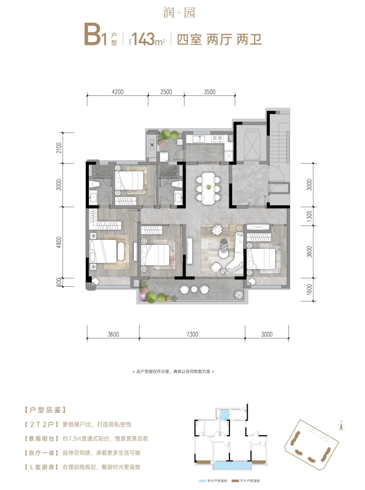 梯户比:2T2、2T4