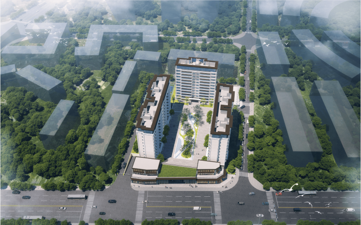 基地东侧(内侧):集中布置3栋高层住宅,形成一个内向性的、安静舒适的居住区域。