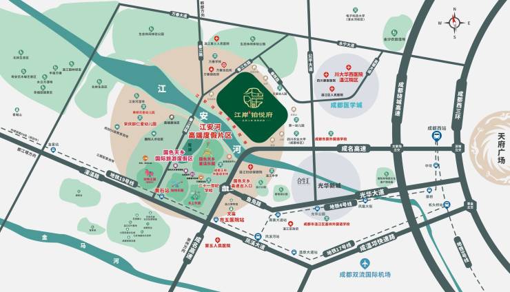 定位:坐拥江安河生态资源,集主题乐园、高端别墅区、商业配套于一体的大型国际度假区