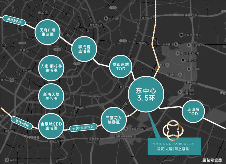 3.5环高端价值轴,西连金融城西、金融城一二三期,东接白鹭湾、三圣乡板块,是打通城市发展的关键。集政策导向、高端产业、公园生态、前沿规划和高端住宅基因于一体的高端价值核心增长极。