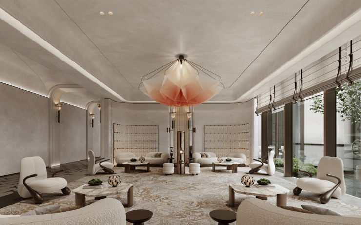 中国深宅大院理念与现代酒店设计风格融合,打造兼具仪式感和尊贵感的迎宾空间