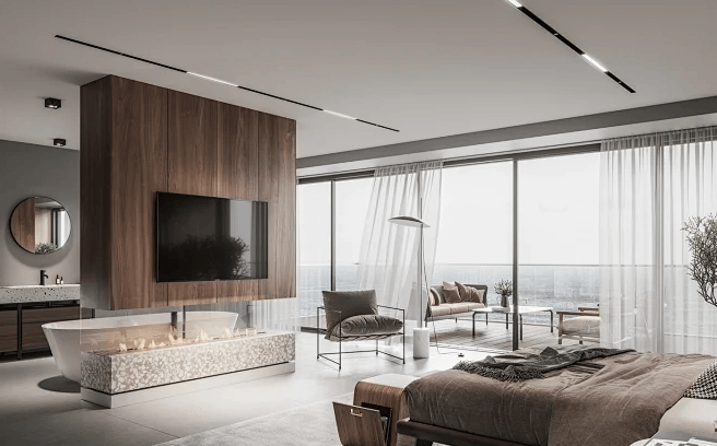 11.5米L型全景阳台衔接独立衣帽间,双台盆卫浴系统,打造酒店式居住体验。