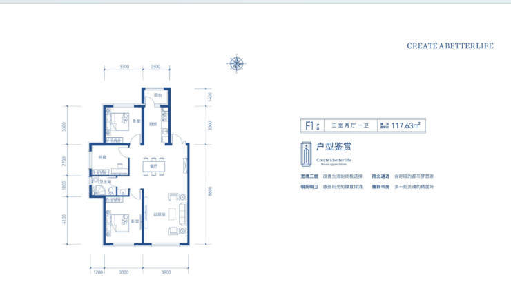 3室2厅2卫:118㎡