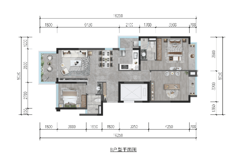 此户型在紧凑面积内实现了极高的实用性与灵活性。同样拥有270°采光与双阳台配置,空间通透明亮。其最大亮点在于主卧可与相邻次室打通,根据家庭不同阶段的需求,可灵活变身为带有独立衣帽间、书房或更大尺度的豪华主卧套房,完美诠释 “会生长的家” ,是注重空间弹性与性价比的成长型家庭优选。