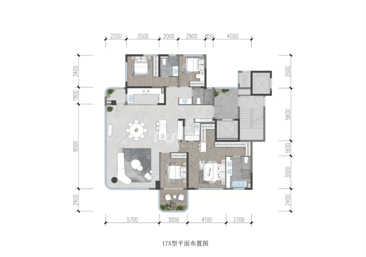 售面积:约143 -175 -199 ㎡ 精装四房;