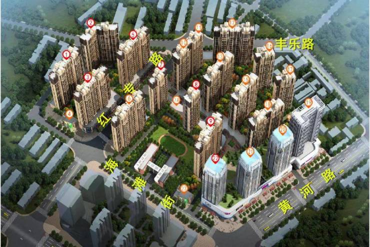 【项目概况】泉舜上城项目,位于黄河路南阳路交叉口东北角,总占地面积约230亩,总建筑面积约94万方,建筑面积42-67㎡一室两室,80-130㎡两房三房城心品质住宅。
