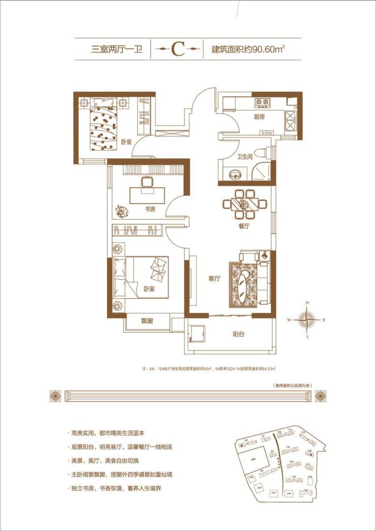 【标准层高】2.9米【容积率】5.98【绿化率】30%左右【车位比】1:1【得房率】19号楼71%左右18号楼74%左右