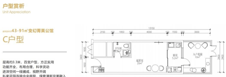 面积段:43㎡-91㎡(主力面积55-60㎡)